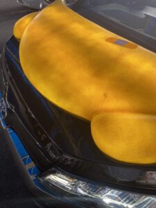 『あたま、うしろあし…』車におおいかぶさっているような感じです🐾